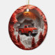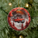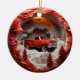 Bring a touch of rustic charm to your Christmas tree with this beautiful ornament featuring a classic red truck parked in a snowy forest. The intricate detailing and vibrant colours make it a standout piece.