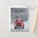 Red Pickup Truck Driving in Snow Holiday Postcard