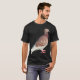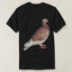 A t-shirt with a large isolated red pigeon motif.