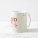 Mug with the Red Pill Analytics red text logo on the tan pill pattern background.