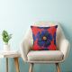 Red pillow with blue silk flowers
