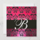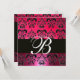 RED PINK BLACK DAMASK MONOGRAM fuchsia white Invitation