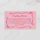 Red Pink Bow Frame Handwritten Display Shower Enclosure Card