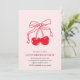 Get ready for a sweet celebration with this Cherry on Top Birthday Invitation! Designed with adorable cherries, satin bows, and retro flair in a red and pink palette, this invite sets the tone for a whimsical and fruity birthday bash. Perfect for kids’ parties with a touch of vintage dessert-shop charm! Easily customisable with your party details.