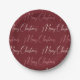 Red Pink Cream Script Pattern Merry Christmas Paper Plate