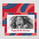 Merry Christmas card in red, pink and dark blue with your custom photo and greeting. Default text: Happy Winter Holidays