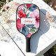 Red Pink Floral Elegant Pickleball Paddle with Watercolor Flowers Art, Use personalise this template option to change text