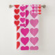 A red, pink and fuchsia hearts in a backdrop of light pink