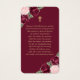 Elegant watercolor floral memory card/funeral prayer card featuring a photo adorned with pink and red roses and baby's breath flowers on a dark red background.