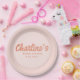 Red Pink Handwriting Retro Bridal Shower Paper Plate