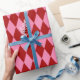 Red Pink Harlequin Checkered Design Wrapping Paper