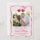 A romantic save the date card with your initials inside a heart-shaped locket tied with a pretty bow whose ribbons form a frame around the save the date card. This trendy design features a digitally hand-drawn illustration and is personalized with your photo. It's perfect for sending out save the dates around Valentine's Day or simply for a coquette, romantic look in pink and red.