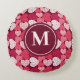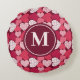 Red & Pink Jigsaw Puzzle Heart Pattern Monogram Round Cushion
