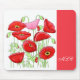 Red Pink Poppies Art Custom Monogram Personalised Mouse Pad