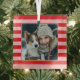 Red Pink Stripes Christmas Photo Glass Ornament