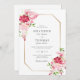 Red Pink Watercolor Roses Gold Frame Wedding Invitation