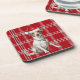 Red Plaid and Jack Russell Terrier Dog Christmas Coaster