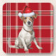 Fun coaster set for the person who loves their Jack Russell. This one wears a red Santa hat for a stylish approach to the holiday season, and sits cutely against a red and white holiday plaid background to decorate your home or office with seasonal pet lover joy.