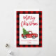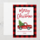 Red Plaid Christmas Brush Script Vintage Truck Holiday Card