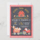 This boy's cute farm, barnyard or farmyard birthday party invitation features a red barn, tractor, pig, lamb and a cow. The design consists of a chalkboard style frame and a red plaid border. This is a cute invitation and sweet way to invite your child's guests to his barnyard theme birthday party.