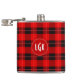 Red Plaid Geometric Pattern Monogram White Accents Hip Flask