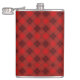 Red plaid hip flask with a metal cap, featuring a classic tartan pattern. The design conveys a cozy, rustic feel suitable for a traditional setting.