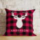 Red Plaid Pattern and Deer Christmas Cushion