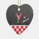 Red Plaid Reindeer Chalkboard Family Name Ceramic Ornament