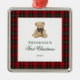 Red Plaid Teddy Bear Baby First Christmas Metal Ornament