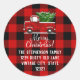 Custom personalised return address label sticker is great as a personal touch. Old antique Red Pickup Truck with Christmas Tree in the bed, with script typography Merry Christmas, adorable vintage Country southern style holiday theme with red and black buffalo check plaid print pattern.