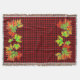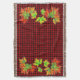 Red Plaid with Fall Maple Leaves Throw Blanket