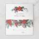 This pretty table place card features a red poinsettia and teal greenery top border. Your custom text is in teal. The back of the card has a second poinsettia floral bouquet image, and two more custom text fields. The inside of the card is solid matching red. This table place card matches seasonal wedding invitations and Christmas Party invitations in our store. *Thanks to ATArtDigital on Etsy for the graphic designs used in this menu card.