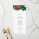 Here's a beautiful menu card that is perfect for weddings or special events during the Holiday Season. It features Christmas greenery and red poinsettia blossoms as a top border, with your custom text in gold and dark green below it. Everything is placed on a crisp white background. The back of the card has the same floral border at the top. You may add extra text on the back, if you wish, by choosing Customise.