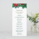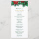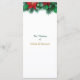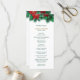 Here's a beautiful wedding program card that is perfect for weddings during the Holiday Season. It features Christmas greenery and red poinsettia blossoms as a top border, with your custom text in gold and dark green below it. Everything is placed on a crisp white background. The back of the card has the same floral border at the top, with two more text fields for you to customise.