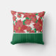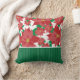 Red poinsettia Christmas pillow. The bottom portion is vertical white pinstripes on a dark green background and the top portion is red poinsettias.