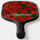 Red Poinsettia Flower Elegant Script Name Pickleball Paddle