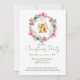 Red Poinsettia Gold Snowflakes Christmas Wreath Invitation