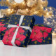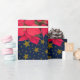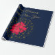 Red Poinsettia Plant on glittering starry blue sky Wrapping Paper
