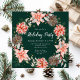 This fun and festive holiday party invitation features a watercolor Christmas wreath with red poinsettias and holly on a dark green background. The text combines handwritten script and serif fonts for an elegant and sophisticated look. This is perfect for holiday parties, brunches, dinner parties, open house and more.