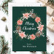 This fun and festive watercolor Christmas postcard can be personalised with a name or title. It features a watercolor Christmas wreath with red poinsettias and holly on a dark green background. The text combines handwritten script and modern serif fonts for an elegant and sophisticated look.