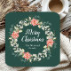 Red Poinsettia Wreath Merry Christmas Square Paper Coaster