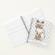 Destei's original cartoon illustration of a cute red point coat colour Birman / Ragdoll breed cat. The background has a pattern of grey cat paw prints. Under the cat there is a personalizable text area for the title of the notebook.