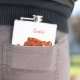 The flask itself is fine. It’s a cheap flask, obviously bought in bulk, however am prepared to overlook that. Given that it is a personalized item, I would have liked to have seen gift boxing instead of the generic packaging. Terrible printing, and/or quality. It’s a cheap, tacky vinyl. It is not cut straight and is also applied in a way that it is overhanging the bottom, causing the glue to catch on items and it will eventually roll and tear, damaging the wrap.