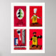 Red Polish Matchbox Labels Grid Print, Vintage Poster
