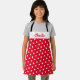 A stylish red and white apron with a fun polka dot pattern. Personalise with the recipient's name, which will appear in script typography at the top of the apron.