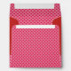 Big red dots on a pink background wrap around a red envelope. There are also big red dots on the inside.