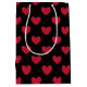 Red polka hearts on black medium gift bag