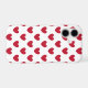 Red polka hearts on white