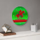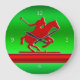 A great clock if you love polo! A rearing embossed-effect red polo pony with player about to strike the ball with the mallet. The background uses a green polished metal effect with a red stripe as an embellishment.