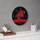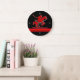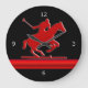 Red Polo Pony on black, red metallic-look stripe Large Clock